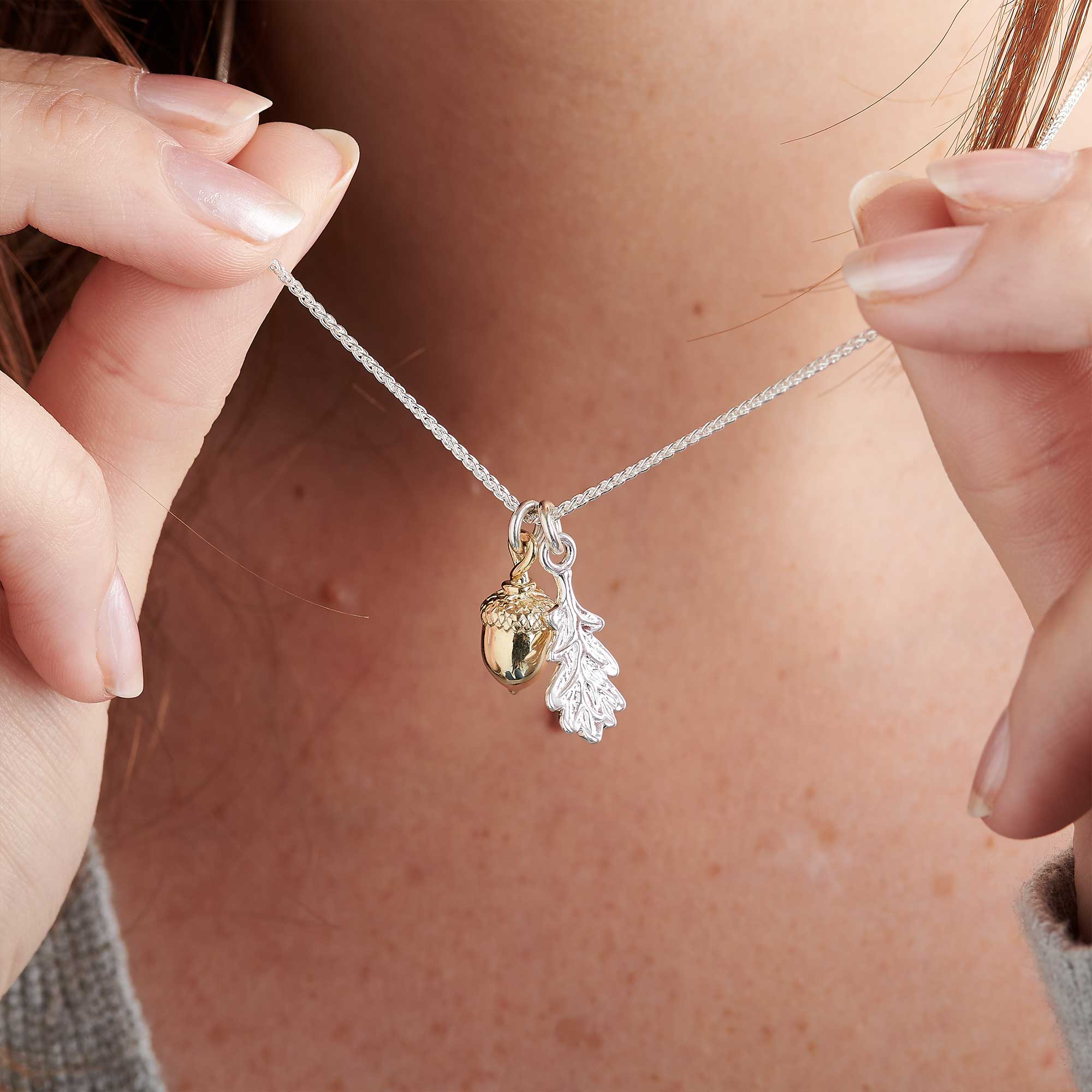 Tiny Acorn & Oak Leaf Silver & Gold Necklace