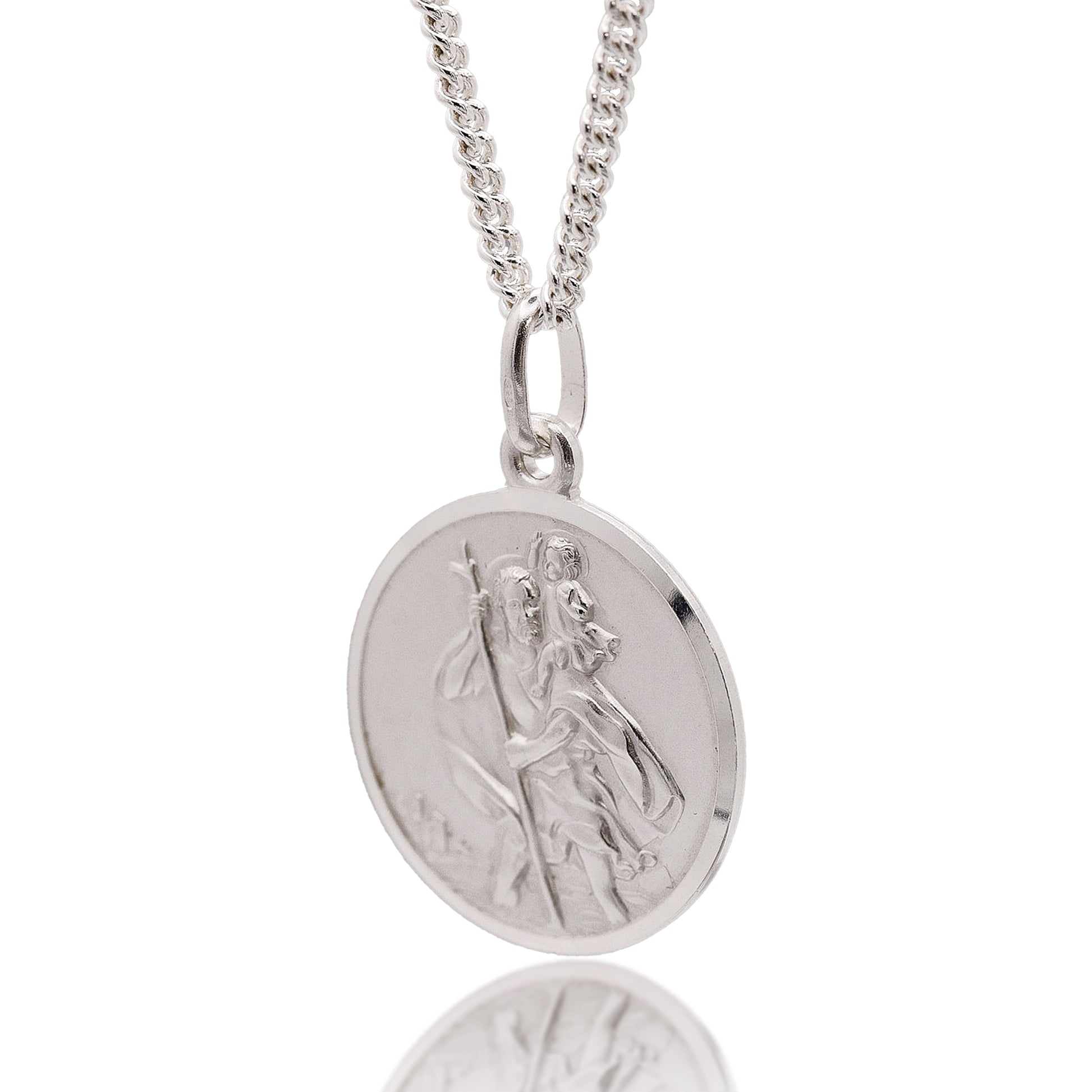 Classic St Christopher Necklace Sterling Silver 27mm