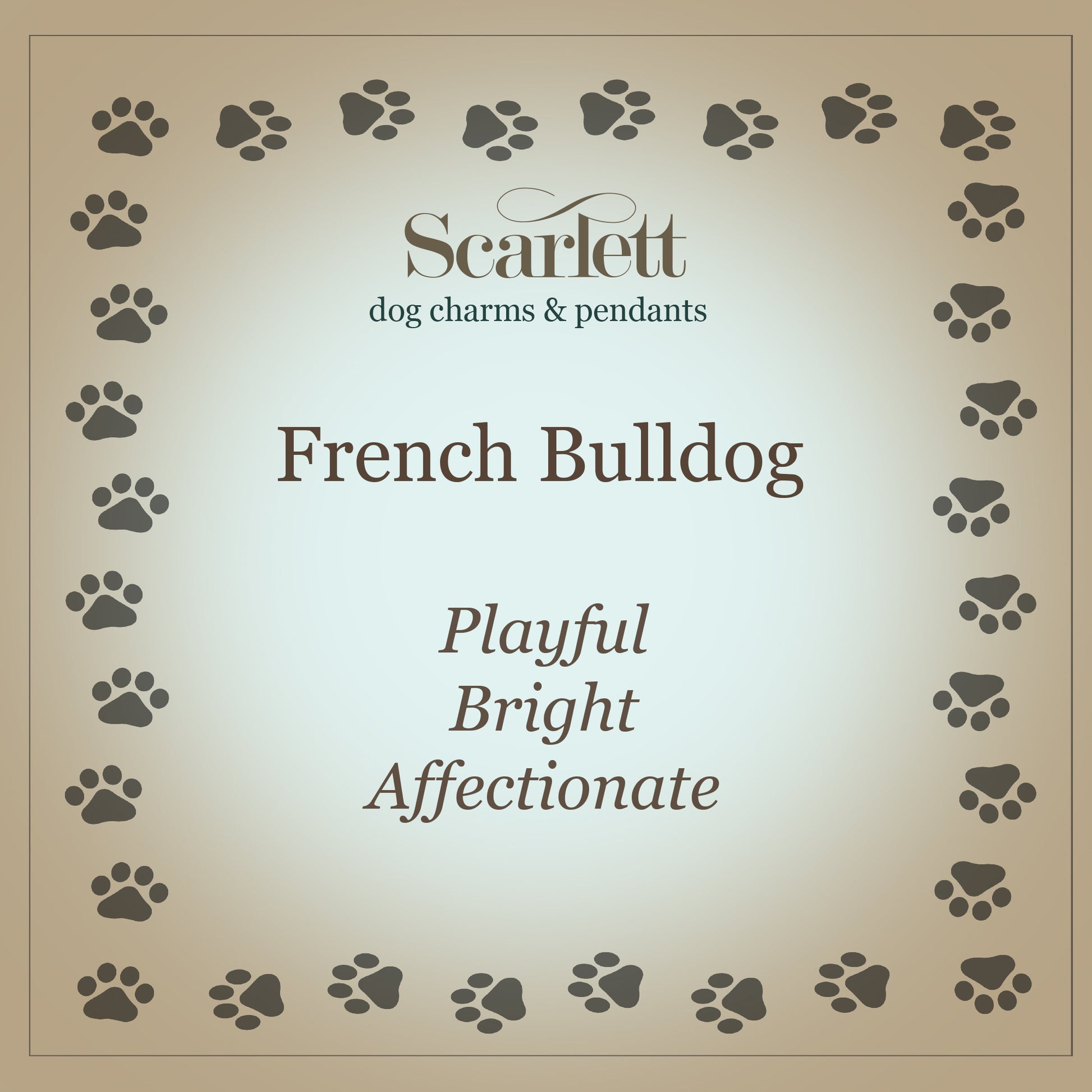 This adorable charm perfectly captures the essence of your French Bulldog, featuring a happy grin and a tiny, curled tail.It embodies the playful, bright, and affectionate nature these popular little dogs are known for.