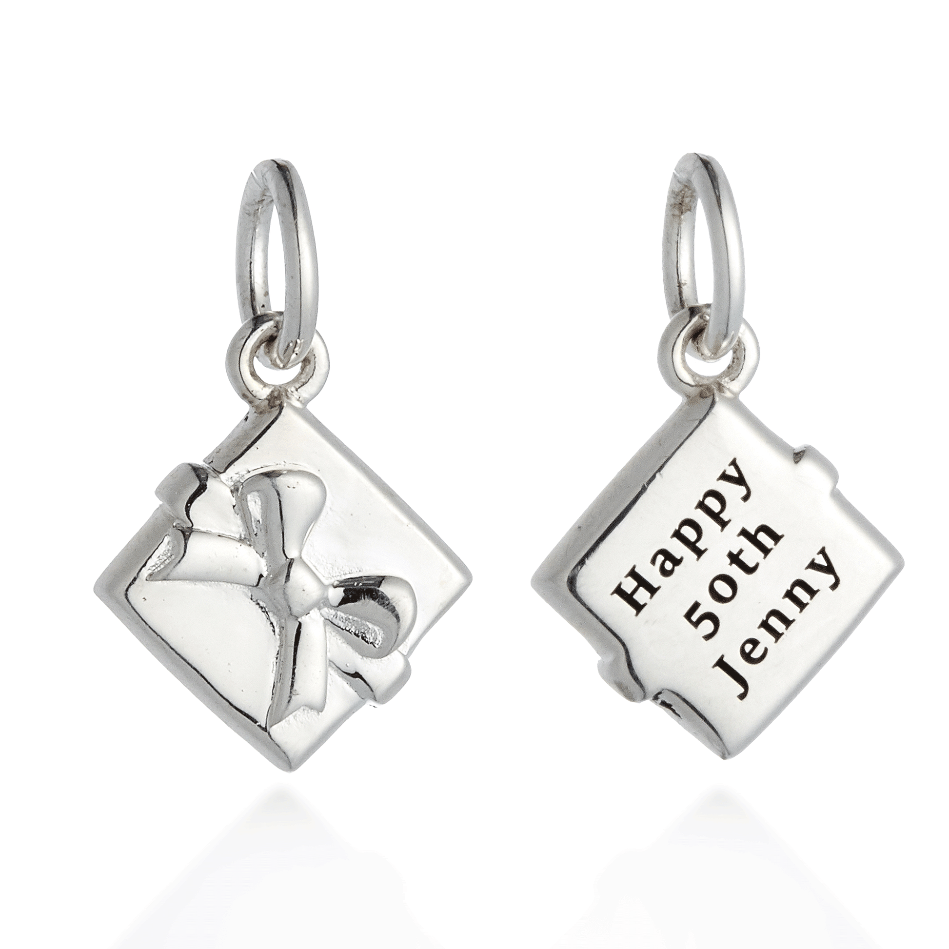 Celebrate life's milestones with our beautifully rounded Present Personalised Silver Charm. Engrave initials, a happy birthday message, or a special sentiment, creating a unique bespoke keepsake that tells a lifetime of stories. This charm, complete with a tied bow, is a timeless expression of affection and a truly special landmark birthday gift.