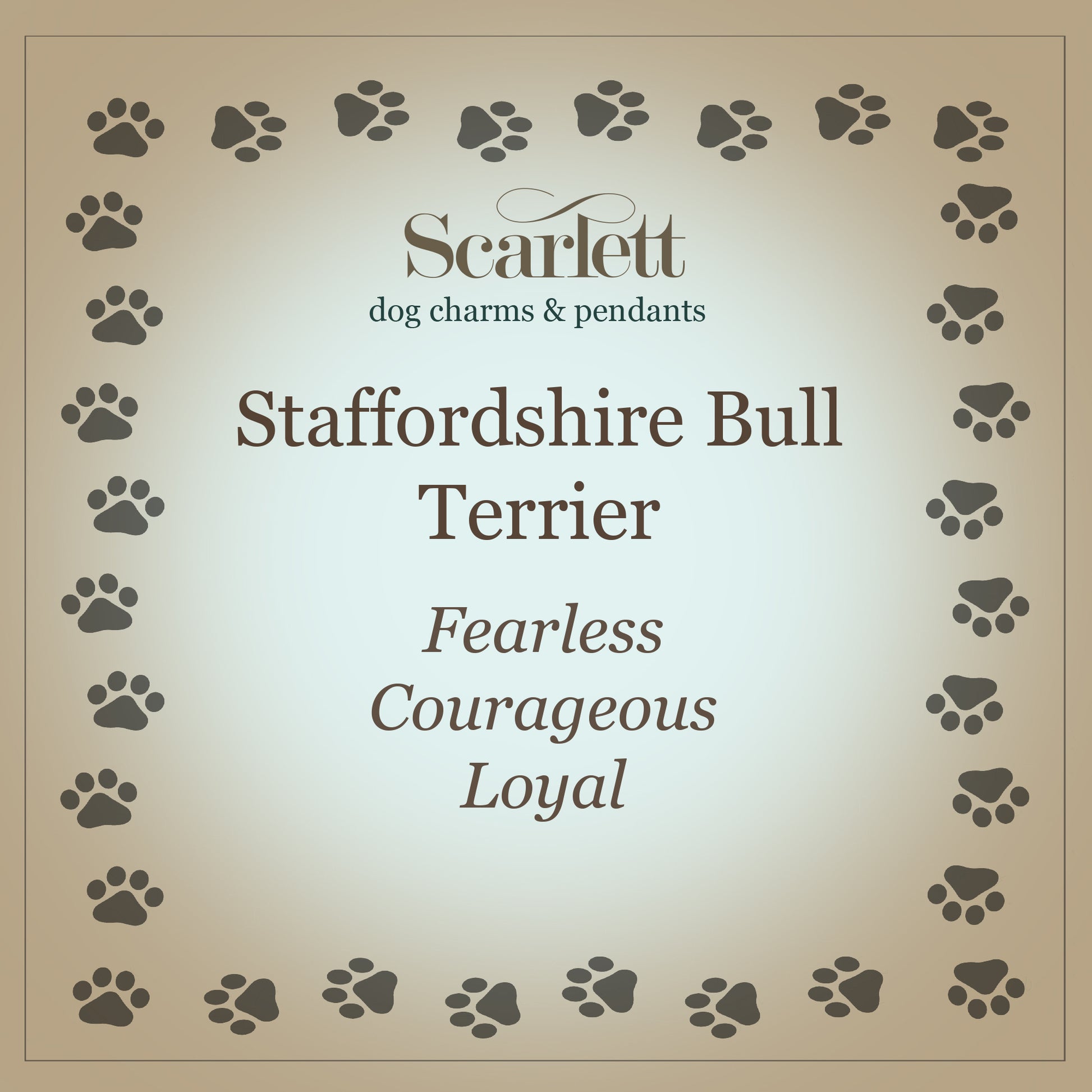 This meticulously detailed charm features a Staffordshire Bull Terrier with their signature big, happy smile. It embodies the fearless, courageous, and loyal nature these cherished companions are known for. The accompanying meaning card highlights these endearing qualities.