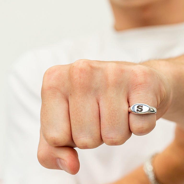 Oval Initial Silver Signet Ring