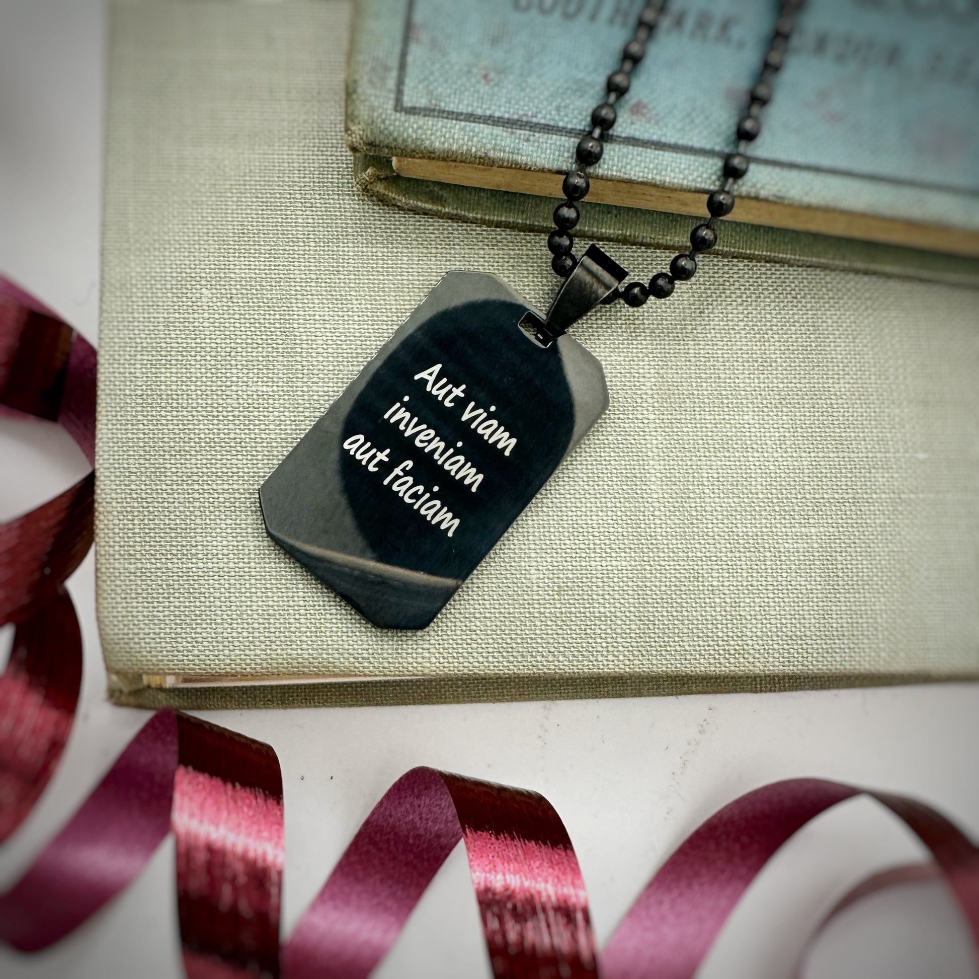 Featuring a sleek black powder coated steel finish, the dog tag can be engraved on both the front and back with a personal message, making it a truly unique gift for your loved ones. Its elegant design and rugged construction are perfect for everyday wear whether you're travelling, running errands or simply spending time outdoors.
