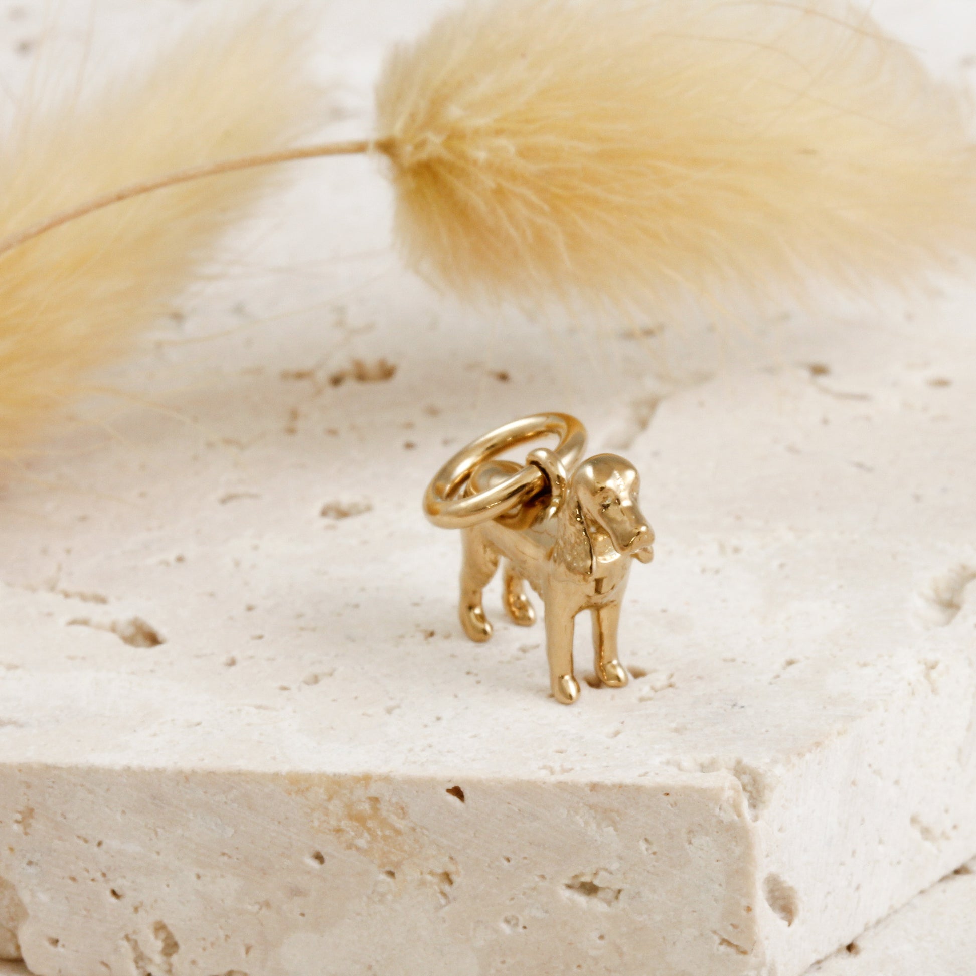 Each charm comes with a meaning card, highlighting the Cocker Spaniel's qualities of faithfulness, affection, and friendliness.