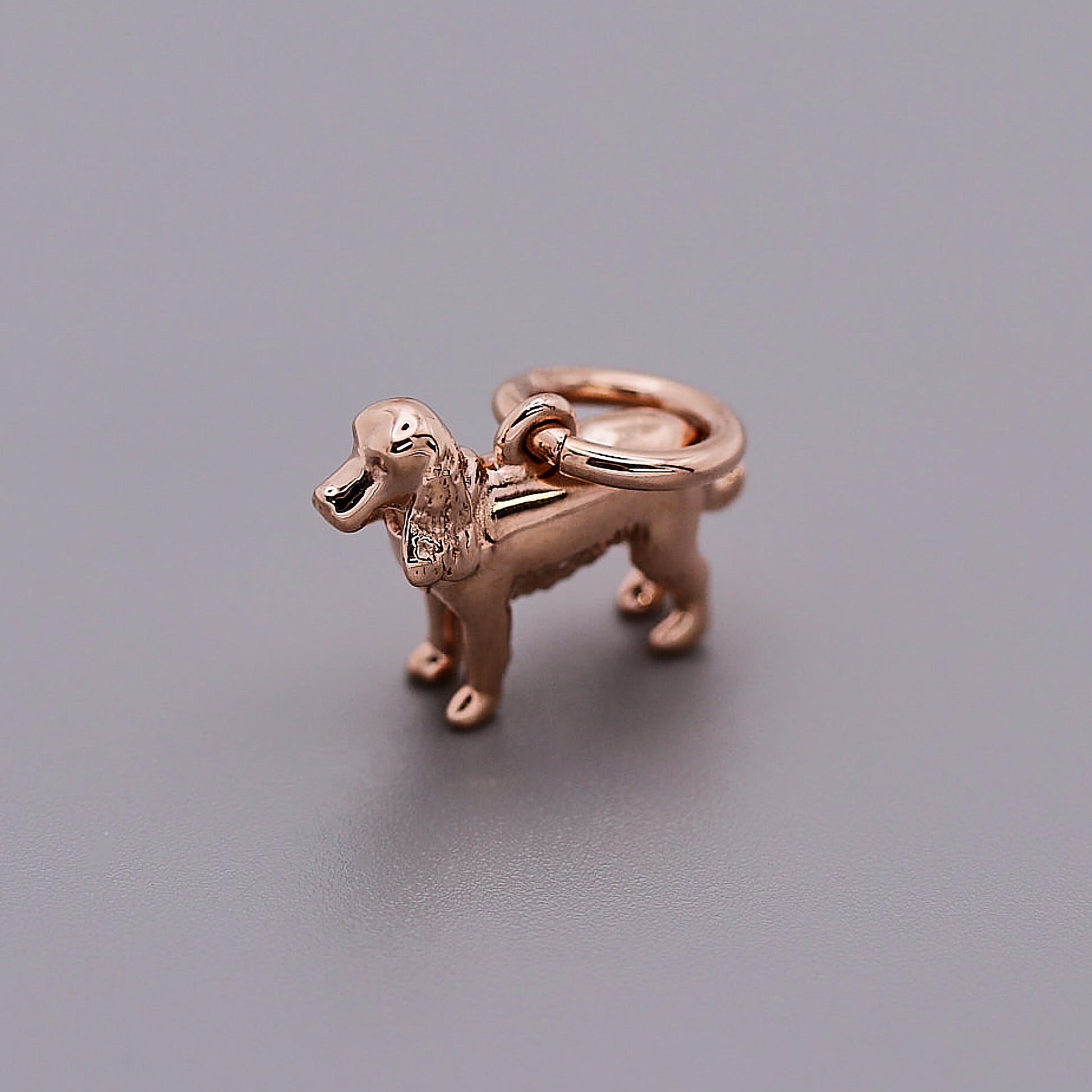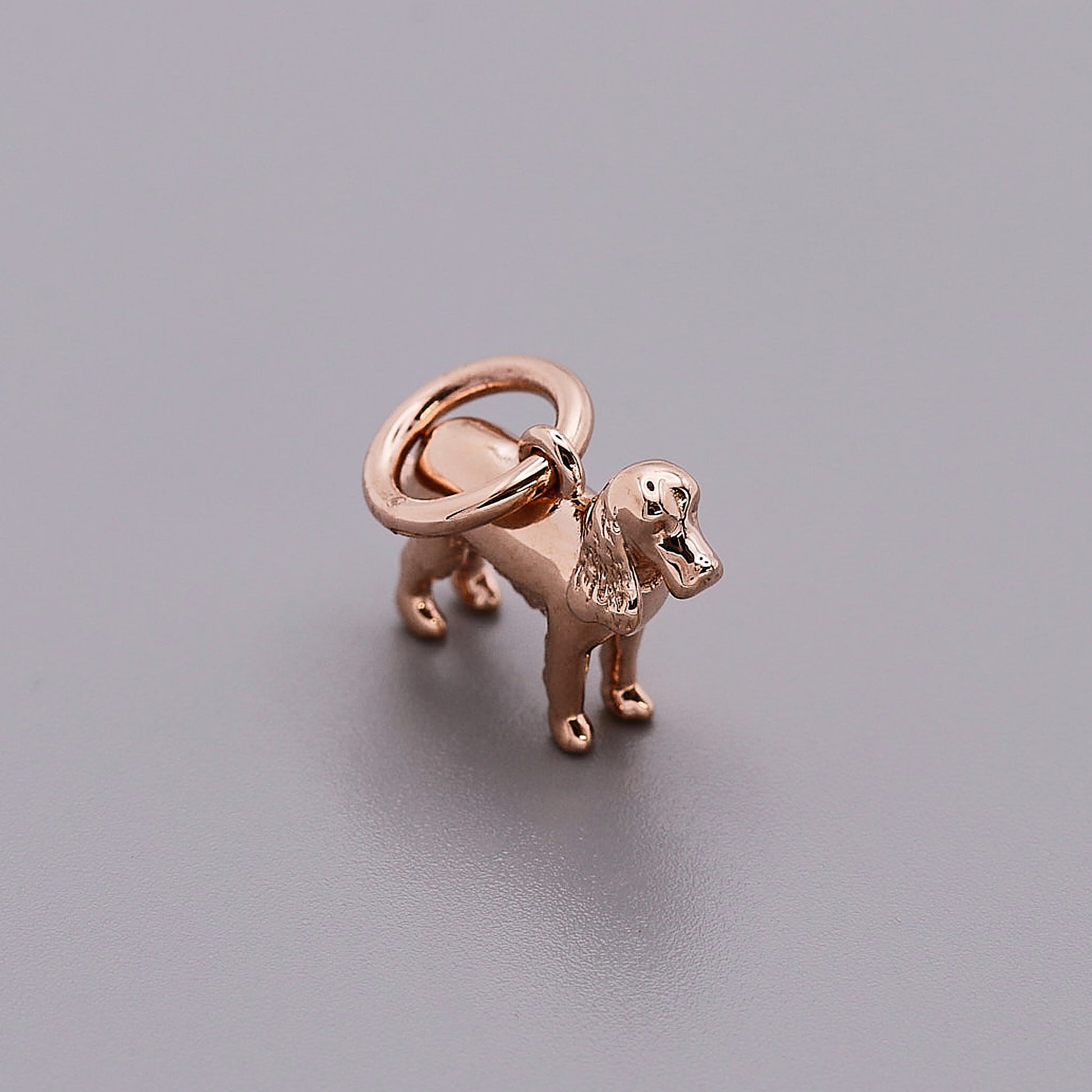 We have one single English Cocker Spaniel Charm in solid 9ct rose gold available so you can opt for rose gold while stocks last!