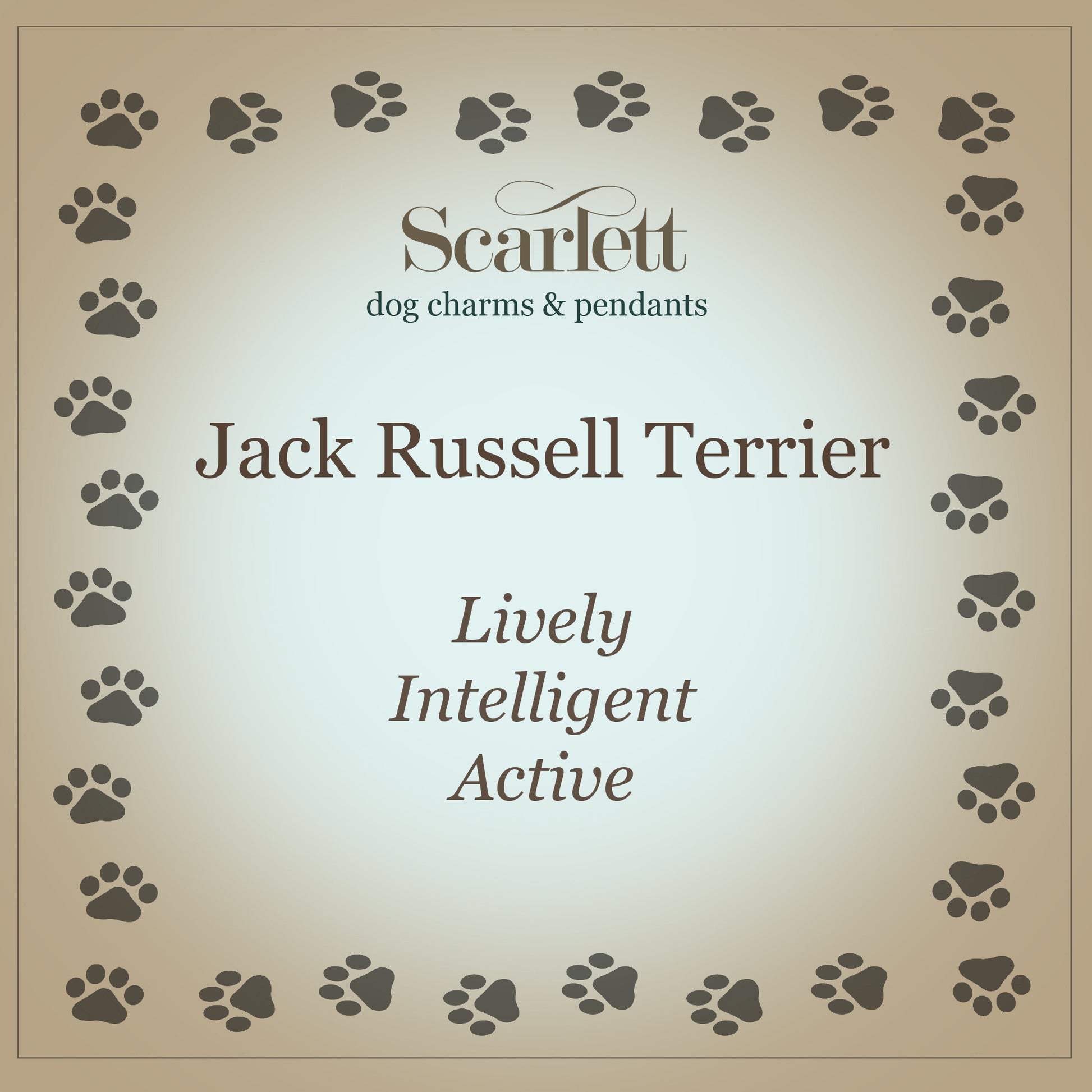 This adorable charm features a Jack Russell Terrier with a characteristic curly tail (often seen in undocked & Parsons Jack Russells) and a cute, inquisitive expression. It embodies the lively, intelligent, and active nature these popular companions are known for.