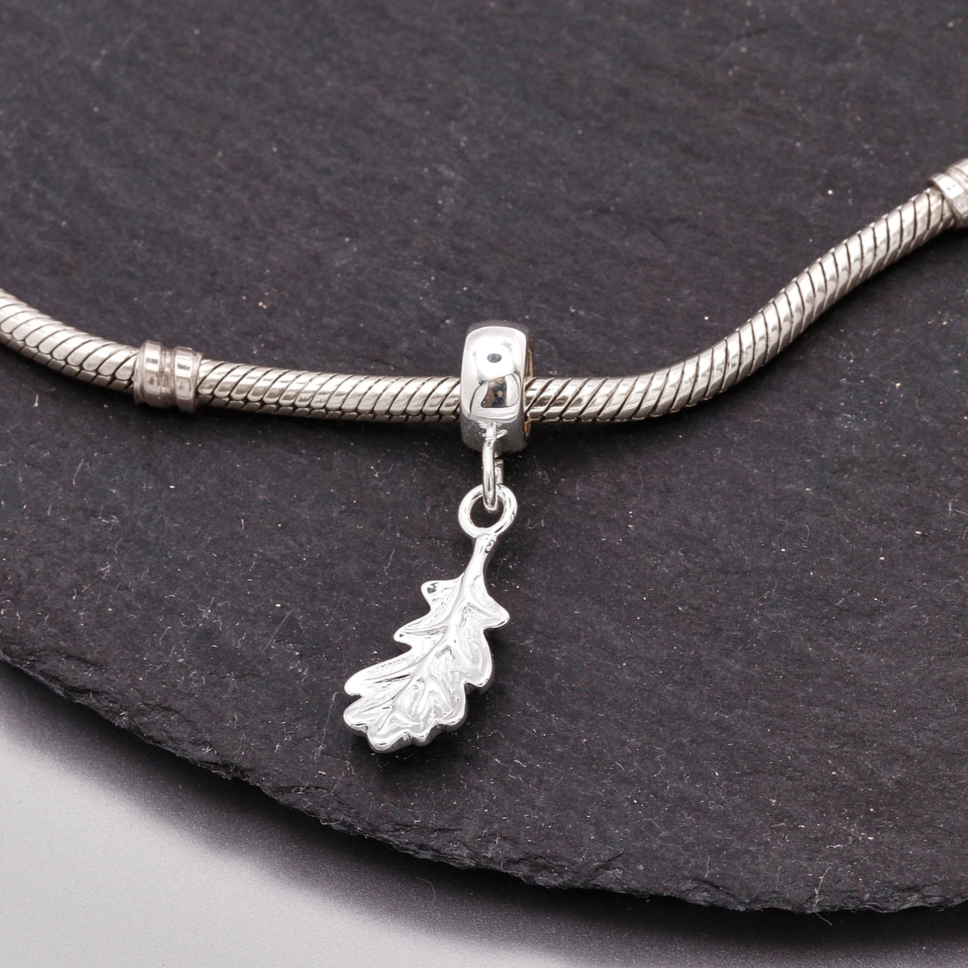Crafted from solid sterling silver, this oak leaf charm is a symbol of strength and perseverance. It's the ideal gift for someone embarking on a new journey or simply seeking a reminder of their inner fortitude.