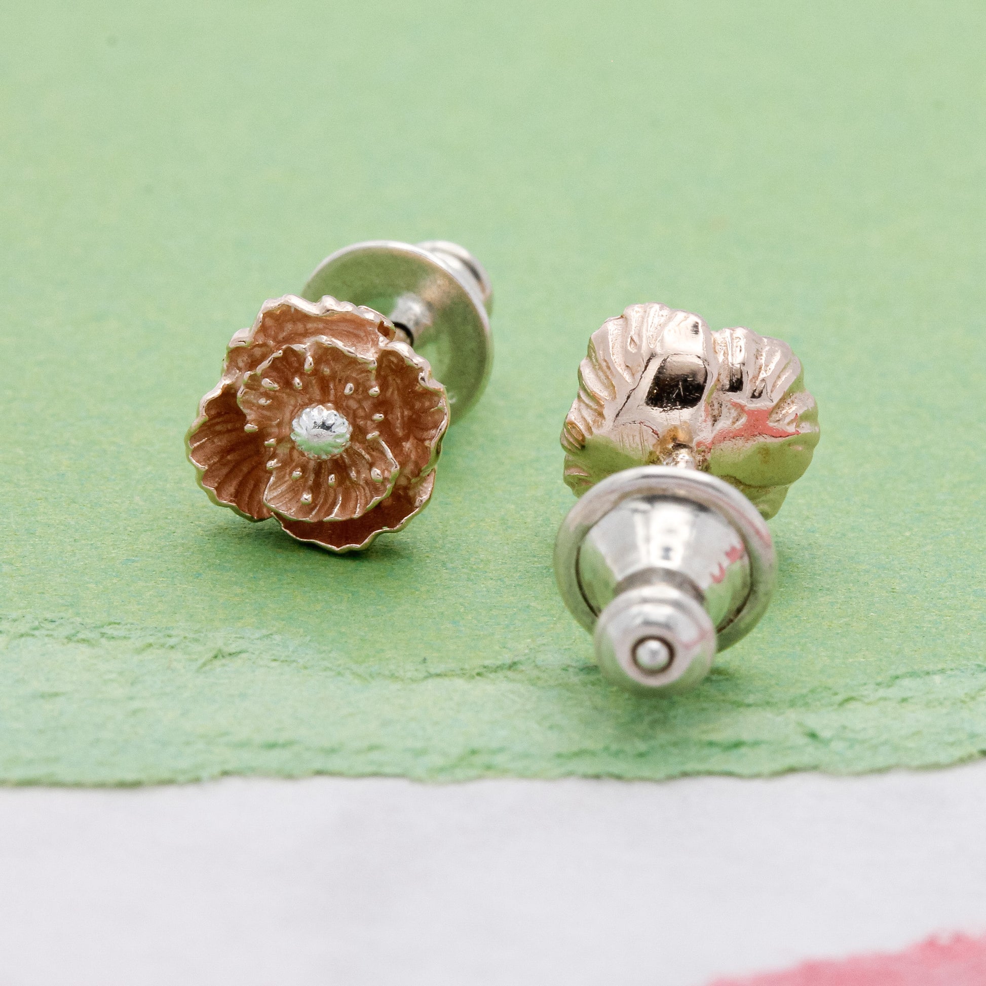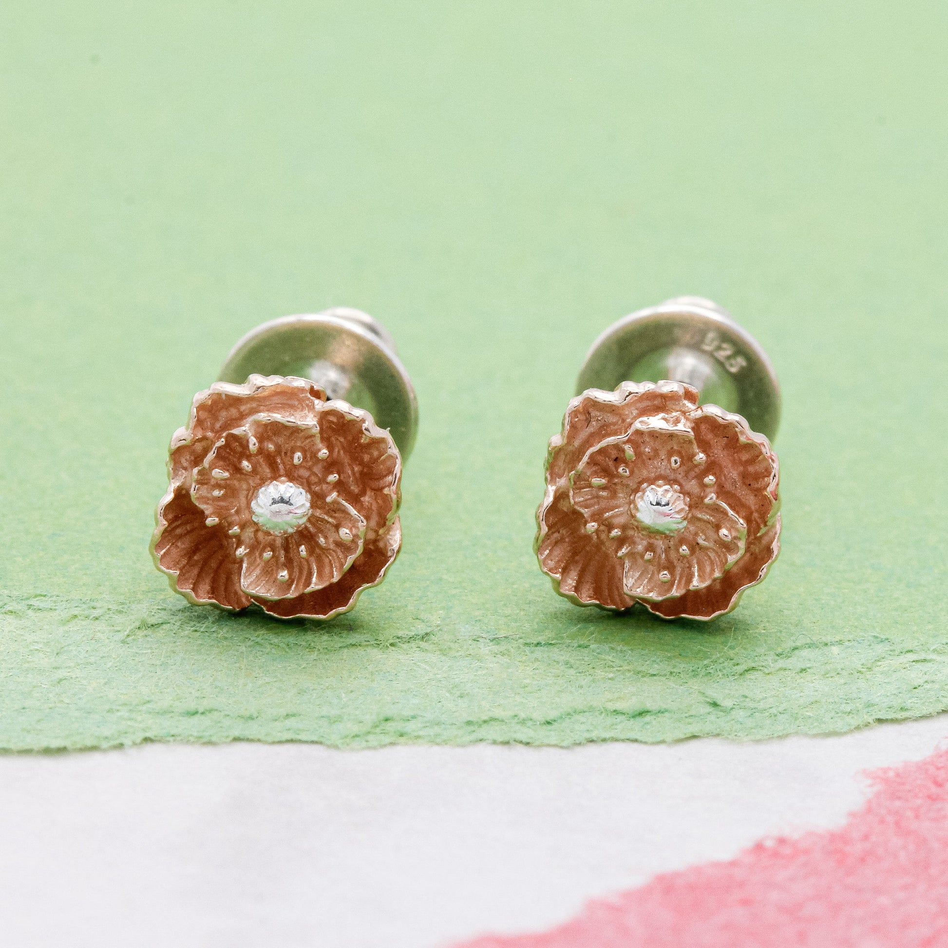 Luxurious Materials Crafted with a beautiful combination of sterling silver and 18ct rose gold vermeil, these earrings feature a sophisticated two-tone design. The warm blush tones of the rose gold petals create a striking contrast against the cool lustre of sterling silver, capturing the authentic beauty of wild poppies in bloom.