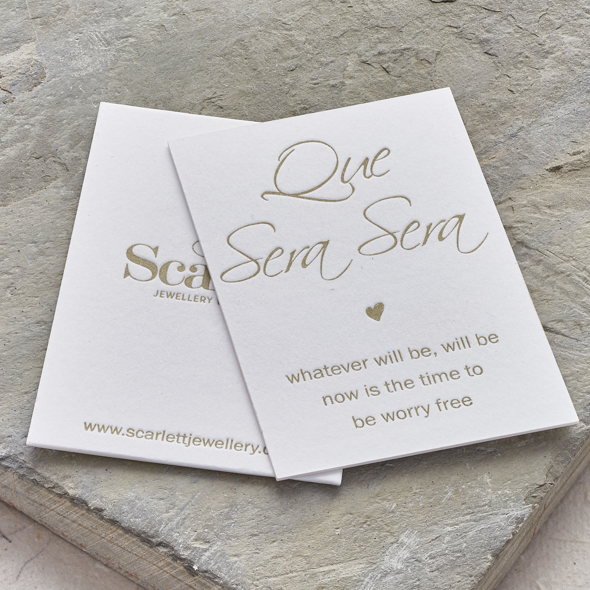 - Meaningful inscription: The "Que sera" message promotes acceptance and peace of mind.