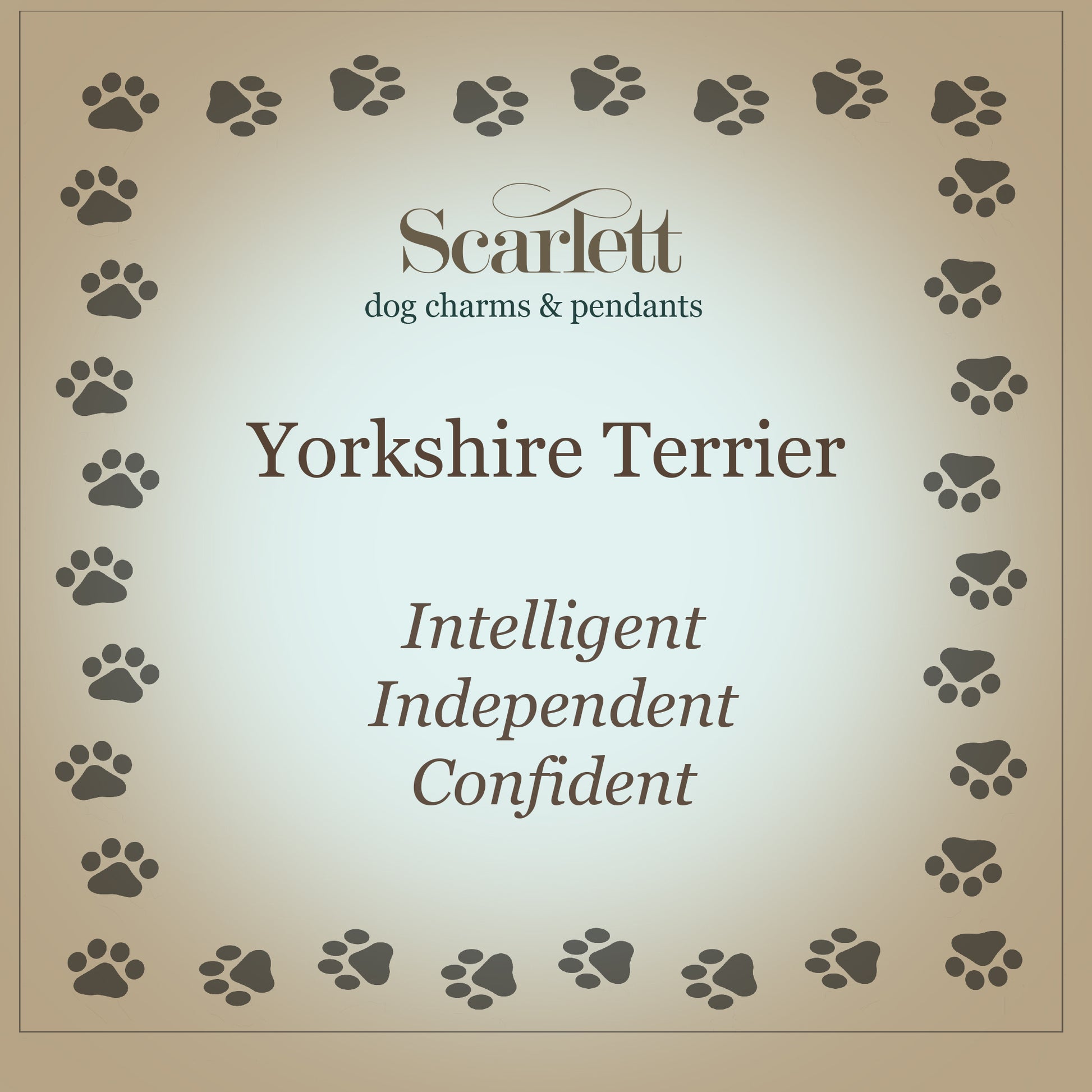 Our Yorkshire terrier charm embodies all the things we love about these popular and iconic dog breeds, and the meaning card that comes with each charm celebrates their best qualities: intelligent, independent & confident.