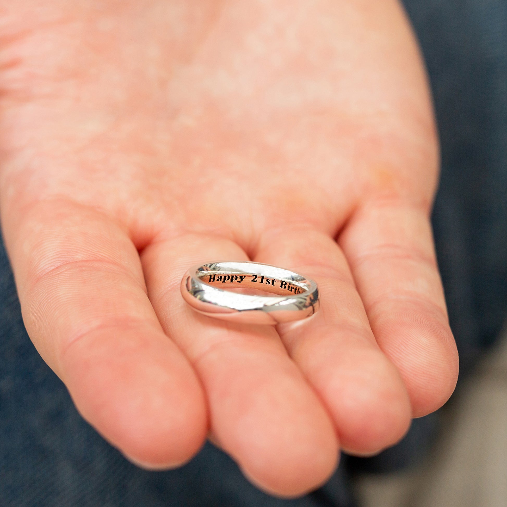 mens wide silver ring with roman numerals engraved 21st birthday gift inside engraving