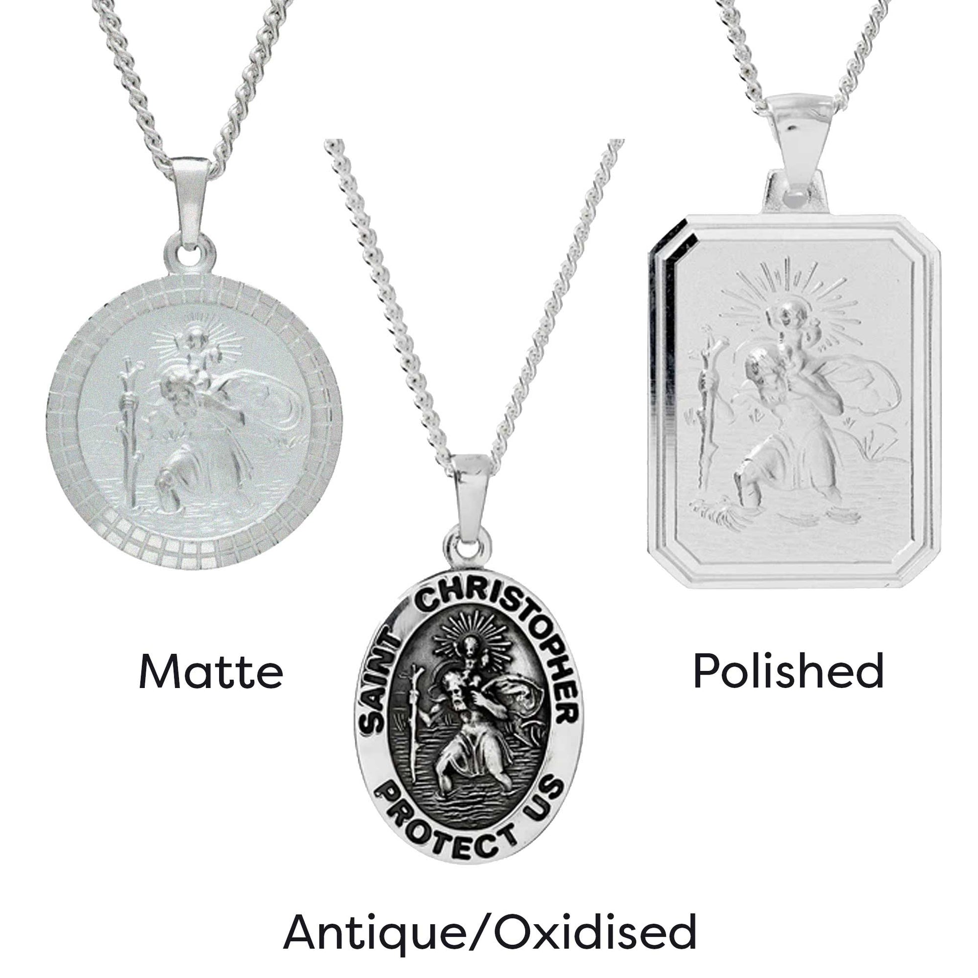 Il s'agit de la version Premium de ce pendentif fabriqué selon une méthode d'estampage traditionnelle de Saint Christophe pour créer un design profondément échancré et finement détaillé.