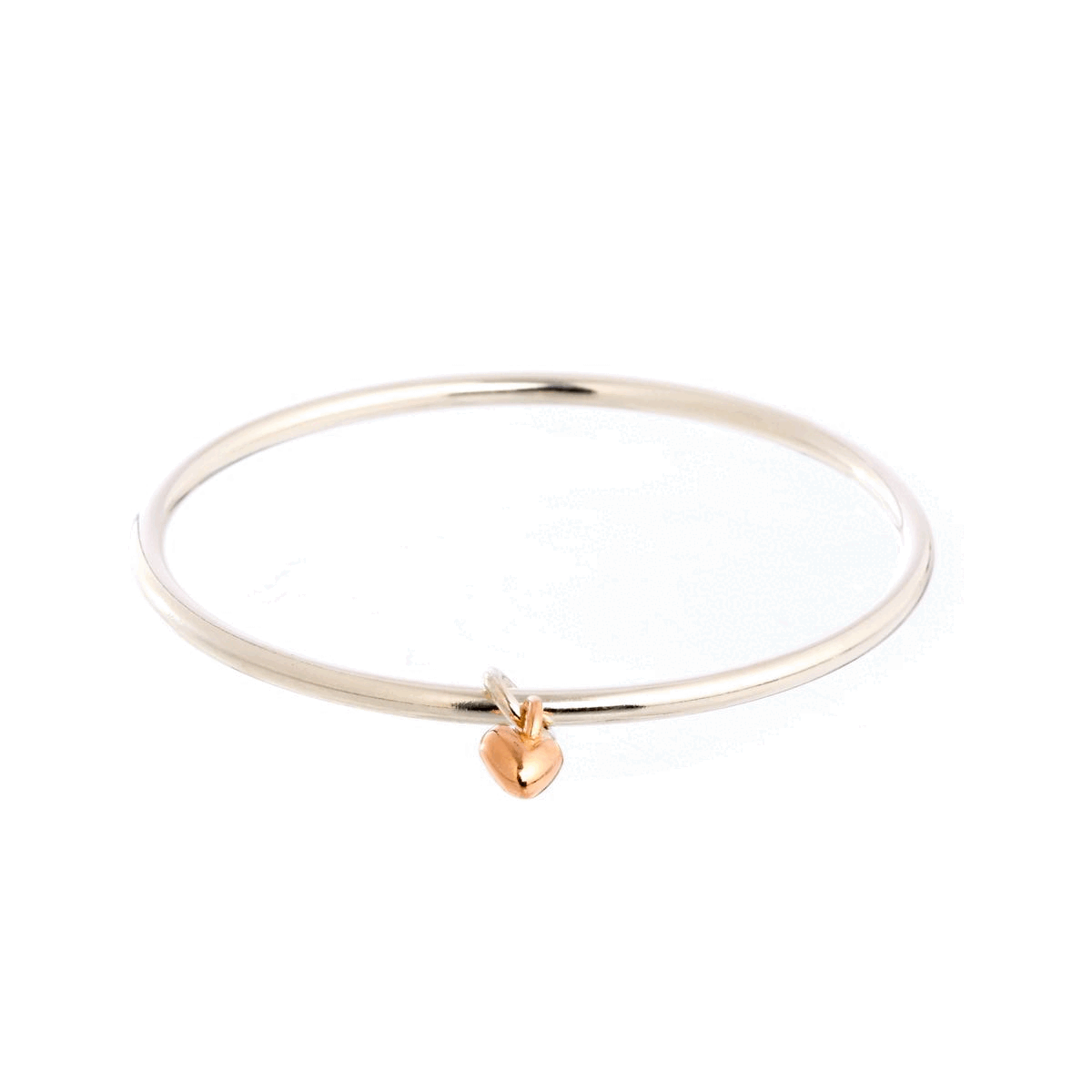 Notre bracelet Sweetheart en argent et en or rose massif est un talisman précieux, un rappel en forme de cœur pour rester à l'écoute de votre cœur. À chaque mouvement gracieux, le charmant cœur en or rose massif se balance délicatement sous le poids du bracelet en argent massif, un compagnon subtil et émouvant tout au long de votre journée.
