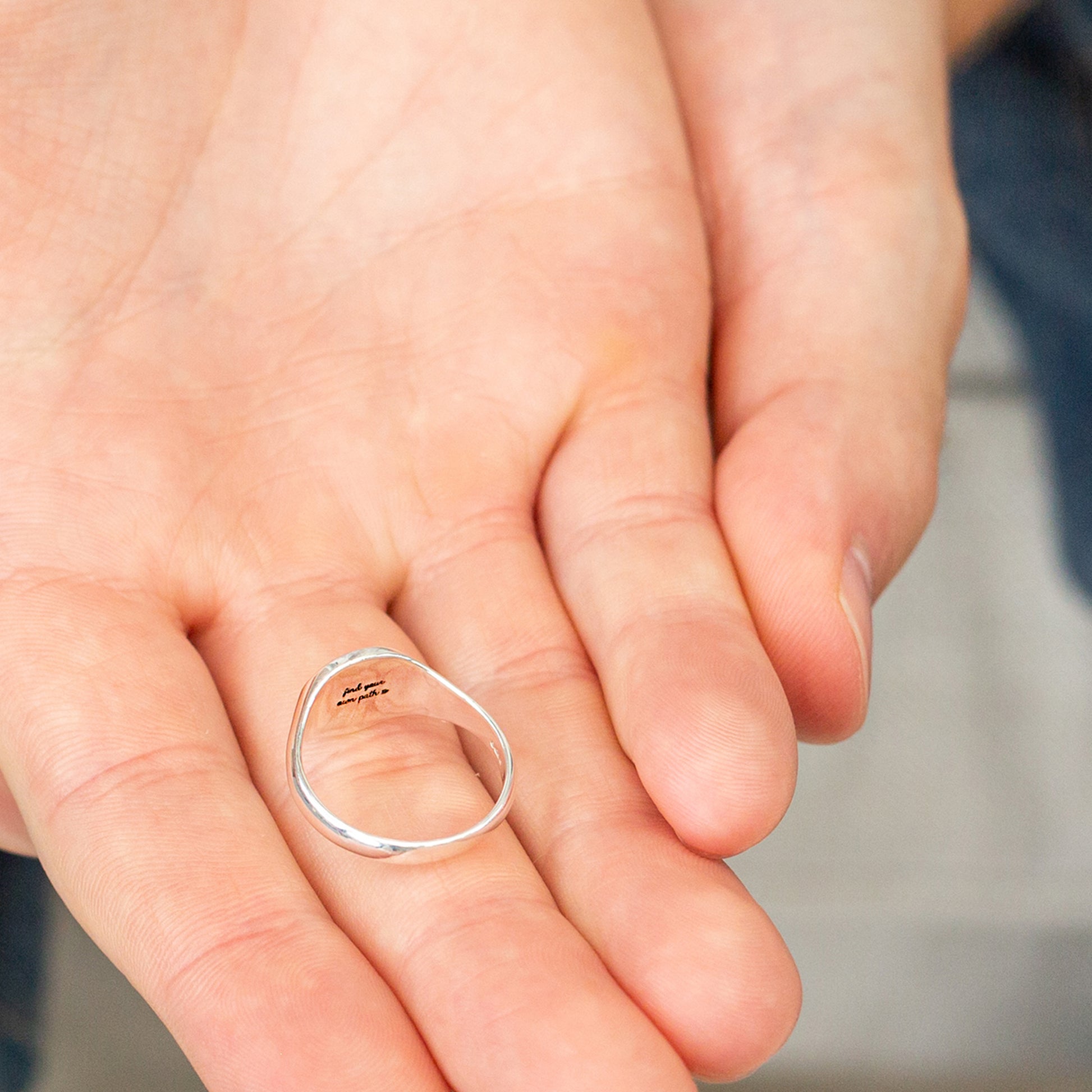 À l'intérieur de la bague, nous offrons la possibilité de graver un message significatif, une date ou des initiales qui ont une signification pour vous ou votre proche. Qu'il s'agisse d'un anniversaire ou d'un sentiment sincère, cette gravure personnalisée transforme la bague en un souvenir précieux.