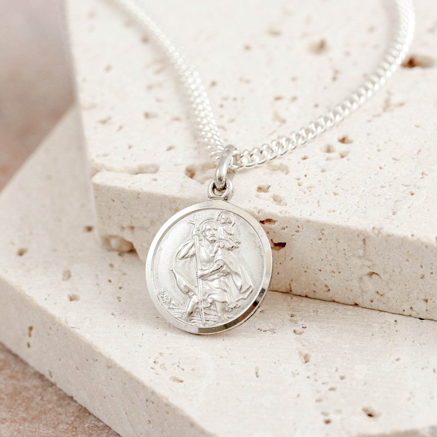 A timeless gift for those you love to keep them safe, this small sized St. Christopher pendant in solid sterling silver is the perfect way to mark a graduation, birthday, or send them off on their travels with love and protection.
