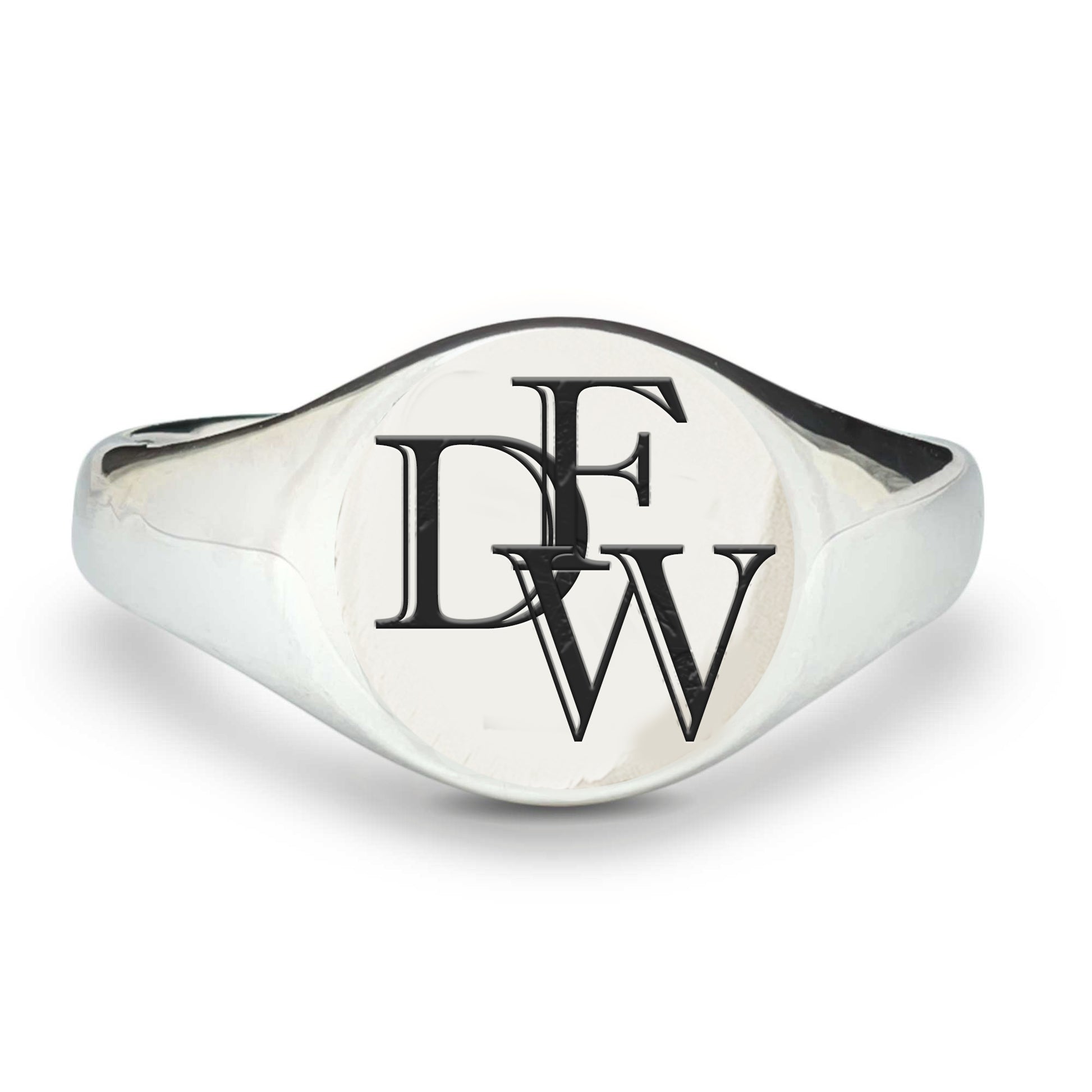 PLEASE NOTE - Although the visualiser may not evenly space your chosen initials within the frame of the ring, rest assured that we will adjust the overlap to create the best presentation of your monogram initials.