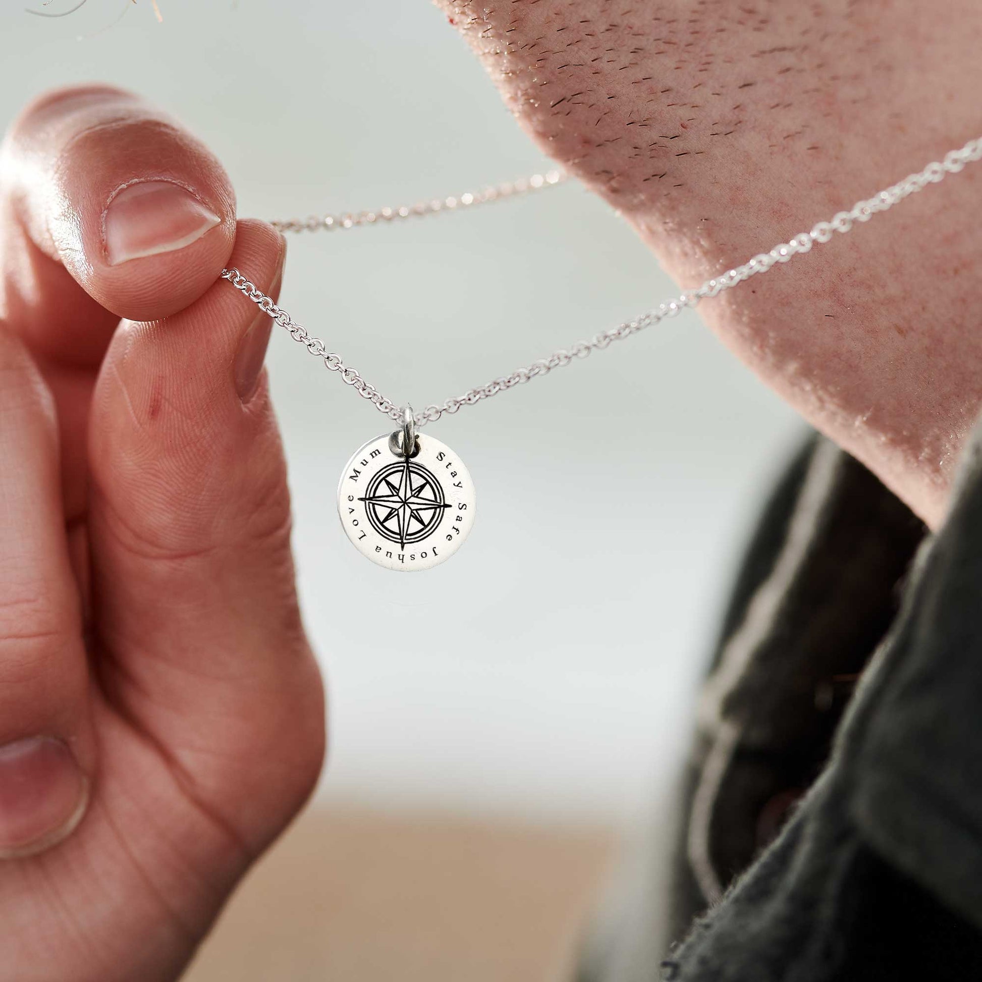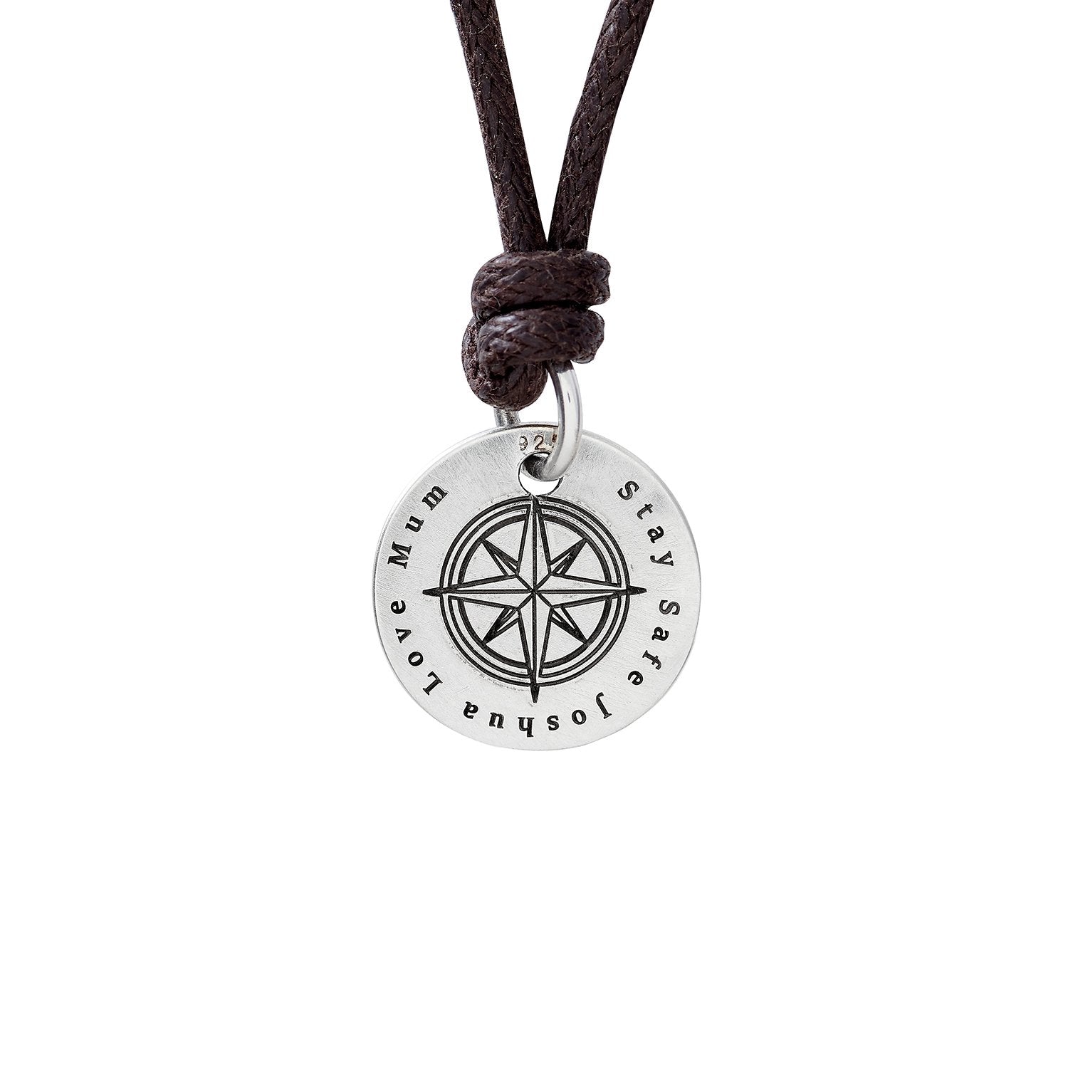 A simple disc pendant engraved with a compass symbol and your own message on the border - a reminder to stay safe on their travels perhaps.