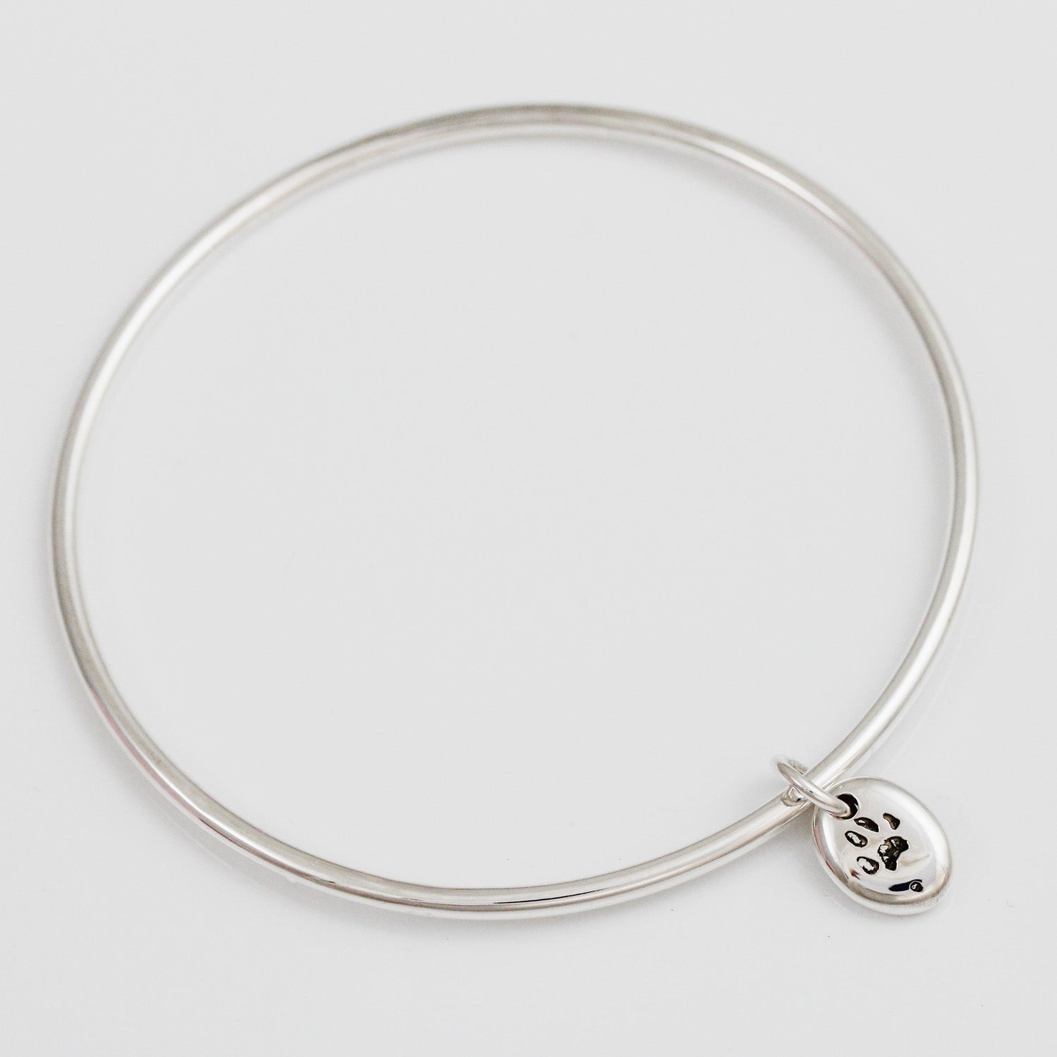 Personalised Pet Paw Pebble Solid Silver Charm Bangle