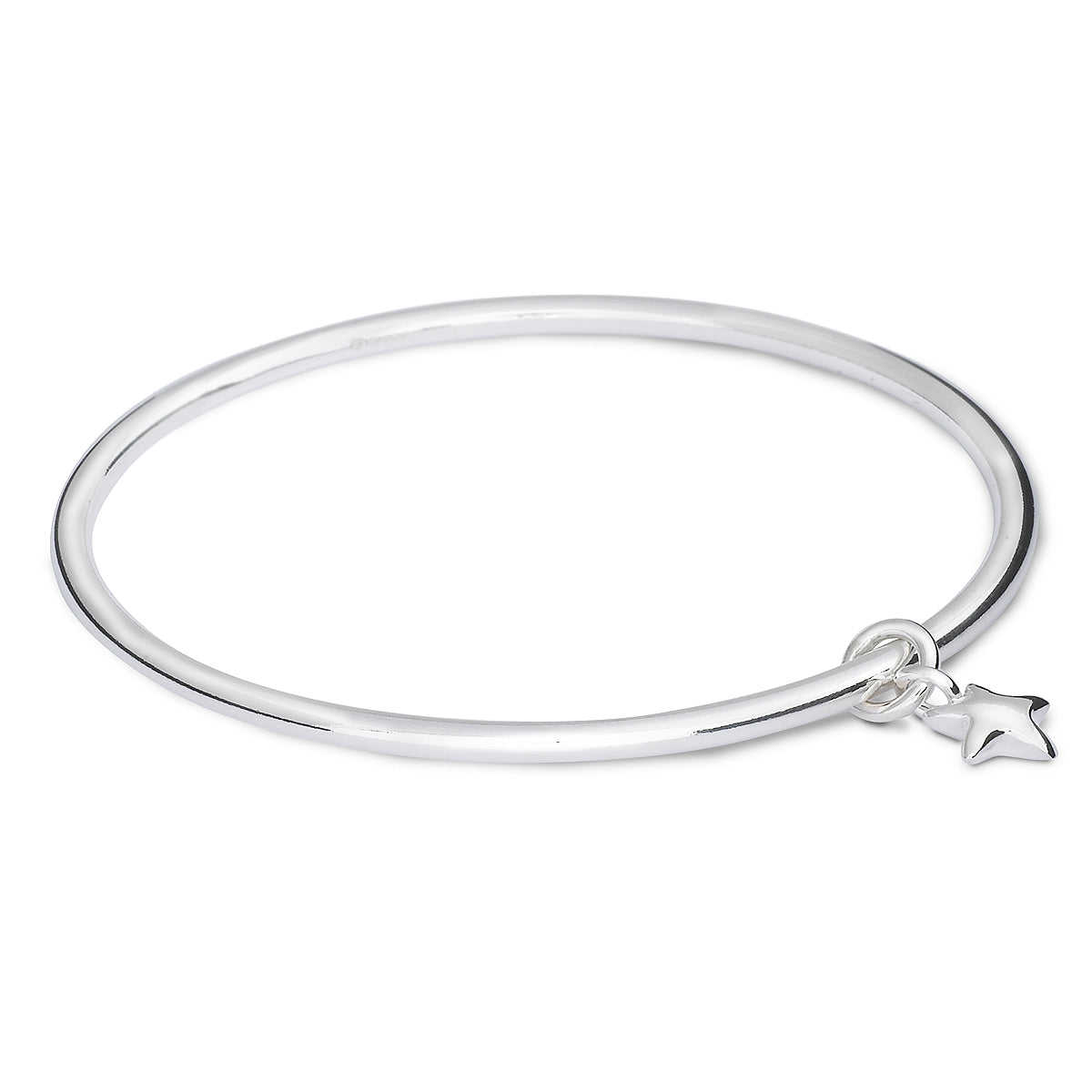 - Luxurious solid silver bangle with organic-shaped silver star charm
